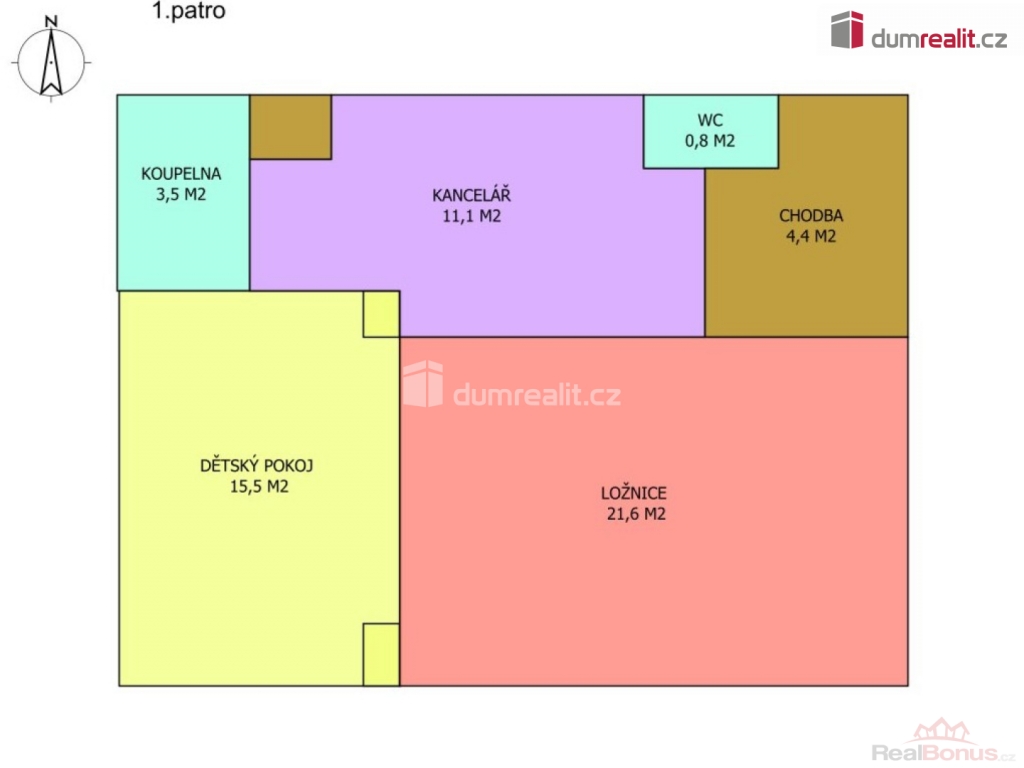 První patro nabízí dostatek soukromí pro celou rodinu. Nachází se zde ložnice, dětský pokoj, pracovna (kterou snadno přizpůsobíte jako další dětský pokoj či pokoj pro hosty), koupelna a chodba. Celková plocha prvního patra je 57,1 m.