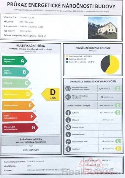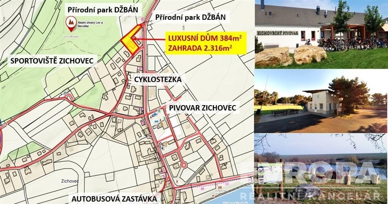 Dům lze případně rozdělit na dva samostatné domy, včetně přístupu a zahrad. Nadstandardně postavený rodinný dům se nachází v klidné a rodinně orientované části obce na kopečku s krásným výhledem. Samotná obec Zichovec je v kraji i širším okolí známá pořádáním řady kulturních akcí velikonoční, vánoční, dětský den, masopust, celoroční plesy a sportovní akce, pivní a gurmánské slavnosti. Fanoušci zde najdou známý Zichovecký pivovar a výbornou restauraci. V obci kromě běžné infrastruktury najdete i školku, pro místní rybáře nádherný rybník, sportovní hřiště a řadu krásných míst k posezení Zichovec je jedna z mála obcí, o kterou se lidé starají, udržují pořádek a čistotu. Nejen Zichovec ale i okolí Vás mile překvapí: Panenský Týnec, Slané...