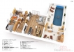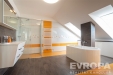Z obývacího pokoje s jídelní částí v přízemí (místnost cca 70m2) vstupujete přímo do zahrady nebo do wellness zóny (vnitřní bazén, třetí wc, sprcha, fitness, sauna). V patře domu je samostatný vstup do 3 místností, šatny a koupelny se čtvrtým wc.