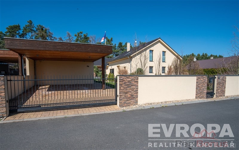 Na pozemku je zastřešené parkovací stání s technickou stavbou, dálkově ovládaná vjezdová vrata, celý pozemek je oplocen. K domu je pro vážné zájemce k dispozici projektová dokumentace stavby. Dům byl postaven ve vysokém nadstandardu pro účely rodinné rekreace významné české osobnosti.