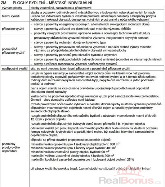 Podle platného územního plánu je parcela zařazena do zóny městského individuálního bydlení, což umožňuje výstavbu rodinného domu městského typu. Zajímavostí této lokality je povolení výstavby domů s terasovitým členěním střech, případně s plochou či pultovou střechou.