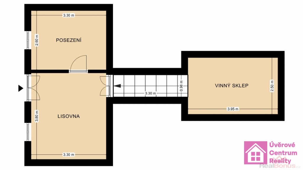 Celková plocha pozemku je 99 m2. Užitná plocha vinného sklepa je 34 m2.