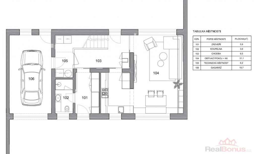Dům nabízí moderní dispozici s dostatkem prostoru pro celou rodinu. Otevřený obytný prostor s jídelnou a kuchyní, tři pokoje, šatna, technická místnost a prostorné koupelny ? vše navrženo s důrazem na pohodlí a praktičnost.