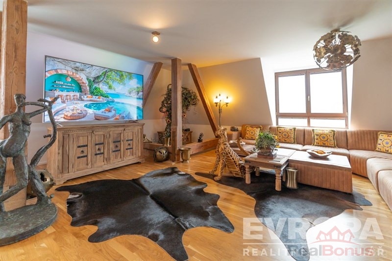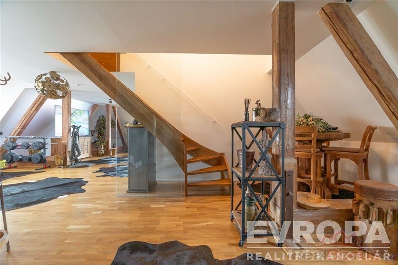 Exkluzivně Vám nabízíme k prodeji unikátní byt 4+kk o celkové podlahové ploše 164 m2. Jedná se o mezonetové bydlení (nová vestavba), kdy dispozičně se v 1. patře nachází vstupní hala, jedna ze tří koupelen s WC, dále pokoj pro hosty / ložnice, jídelní kout, nadstandardně velké zakázkové lůžko mezi trámy a velmi prostorný atypický obývací pokoj propojený s kuchyní, z něhož je přímý výhled na Ještěd. Ve 2. patře se nachází prostorná ložnice s vlastní koupelnou vč. WC a nadstandardně velkou šatnou, dále je zde druhá samostatná ložnice s koupelnou a WC, prací a úklidová komora. Byt se nachází v jedinečné lokalitě na Masarykově ulici ve 3. patře budovy bývalé Obchodní a živnostenské komory (poliklinika) naproti muzeu a lázním, na tzv. Zlatém kříži. Je zde zcela nový výtah s přednostní jízdou na čip do patra, kde se mezonet nachází. Přímo ve dvoře této historické budovy je vlastní nadstandardně široké parkovací stání, které je zabezpečeno proti zaparkování cizího vozidla elektronickým sloupkem na dálkové ovládání. Na patře je též samostatná komora s regály. Byt, který Vám nabízíme, se nachází za rohem na konci chodby bez jakýchkoli sousedů a není tak nikým rušen. Je vybaven exkluzivní kuchyňskou linkou z teakového dřeva se spotřebiči a po dohodě může zůstat kompletně zařízen. Byt je vybaven kamerovým a bezpečnostním systémem. Nízké provozní náklady jsou zde velkou výhodou a umožní tak příjemné okamžiky při užívání si vlastního prostoru a jedinečného místa na bydlení. Byt volný ihned.