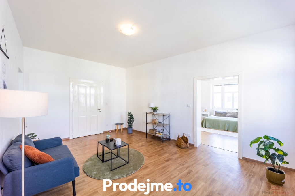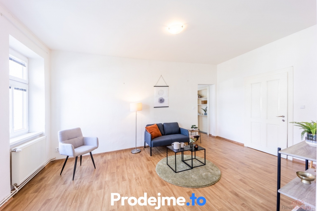 Pokud nejste nároční, nastěhovat se můžete ihned, ale promyšlená rekonstrukce odhalí skutečný potenciál tohoto prosvětleného bytu. Byt má dispoziční řešení 2+1 o celkové užitné ploše 71 m2 včetně sklepa. Sestává z předsíně, velkého obývacího pokoje, ložnice, kuchyně s kuchyňskou linkou, koupelny s vanou, komory a samostatné toalety. Vytápění bytu a ohřev vody zajišťuje plynový kotel. Přímo do bytu je také zavedený plyn.