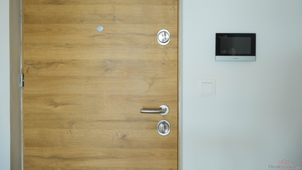 Vstupní dveře: Bezpečnostní dveře splňují třídu 3, certifikovanou dle platné normy, a zajišťují protihlukovou izolaci 44 dB, díky dvojitému těsnění a patentované konstrukci. Zároveň splňují protipožární třídu EI 30, což znamená, že dokáží zadržet požár mimo byt po dobu 30 minut.