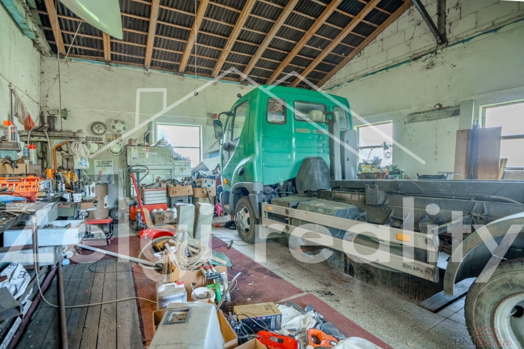 Další zázemí: Menší garáž (63 m) a velká zpevněná plocha pro manipulaci a parkování.