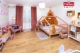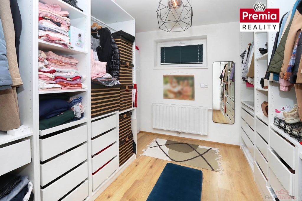 Přízemí: chodba, WC, koupelna se sprchovým koutem, technické místnost a obývák s kuchyňským koutem. Patro: chodba, dva dětské pokoje, ložnice se šatnou, koupelna s vanou, WC.