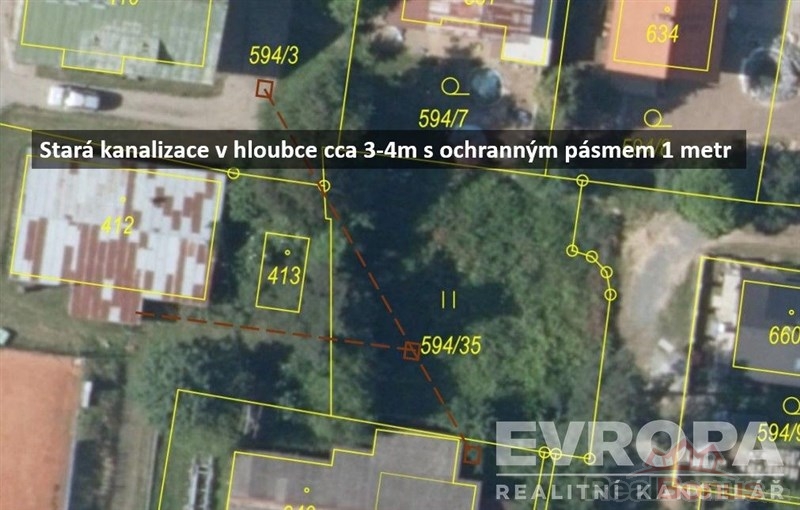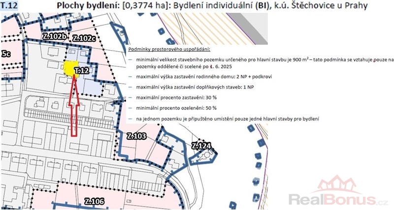 Pozemek je zasíťovaný: na hranici pozemku kaplička s elektřinou, kanalizace a voda je na hranici pozemku (potřeba vybudovat přípojky, kapacita je ověřena). Pozemek je stavební a je určen pro individuální obytnou zástavbu. Přes roh pozemku vede stará kanalizace/nezkolaudovaný vodovodní řád, funkční, vše zakresleno v pláncích (viz.foto), nebrání stavbě domu (rovněž zakresleno, viz.foto). Sekundárním zdrojem vody může být studna. Zastavitelnost dle ÚP je max. 30%, dvě nadzemní patra plus podkroví. Pozemek je v centru obce, kousek od dětského hřiště a kurtů, autobusové zastávky, hospůdky U Taterů a vodní nádrže Štěchovice. Třebenice jsou známé především převozem mezi Slapskou a Štěchovickou přehradou (lodní doprava), přístavištěm parníků a naučnou stezkou Svatojánské proudy.
