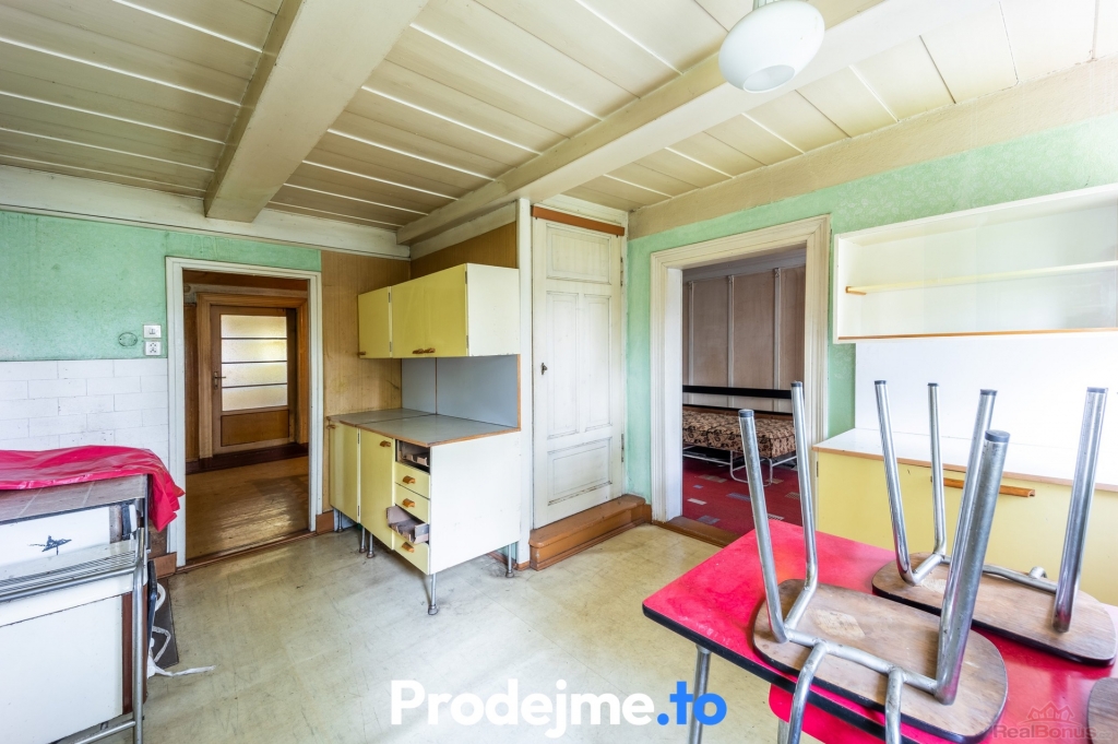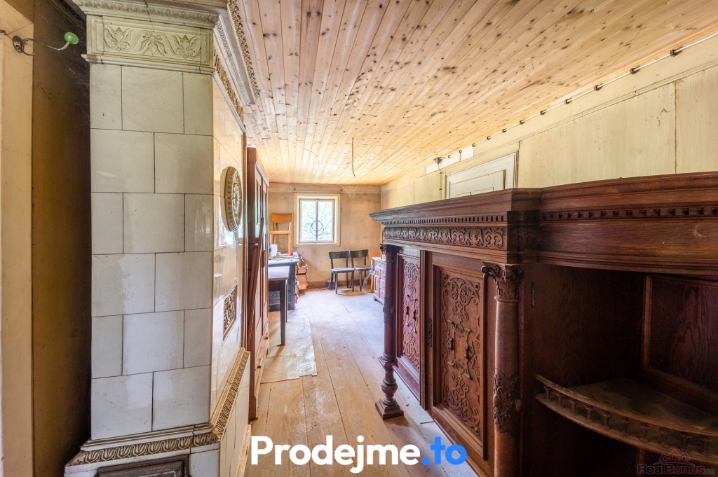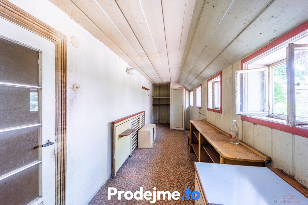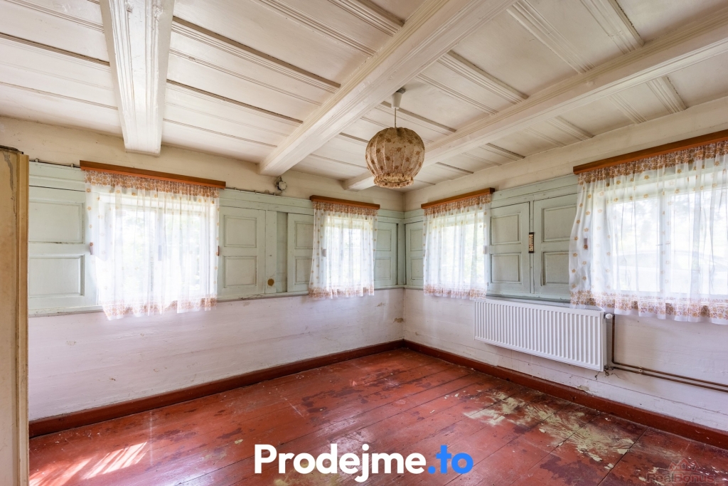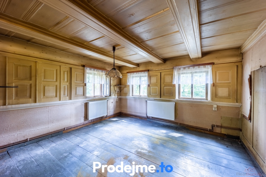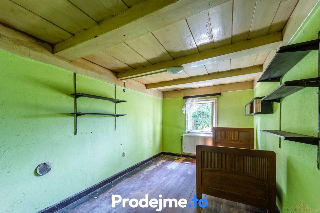 Dřevěná chalupa byla postavená přibližně kolem roku 1900 a je určená ke kompletní rekonstrukci. Je pouze na vás, zda se pustíte do přestavby domu v historickém stylu nebo si zde postavíte dům úplně nový.