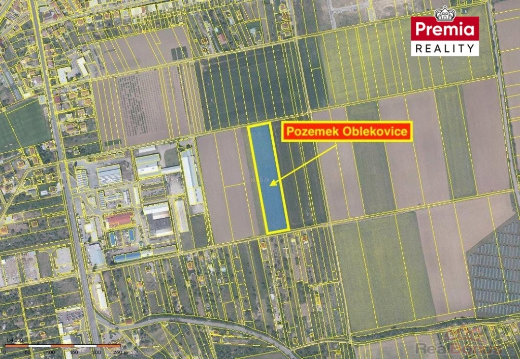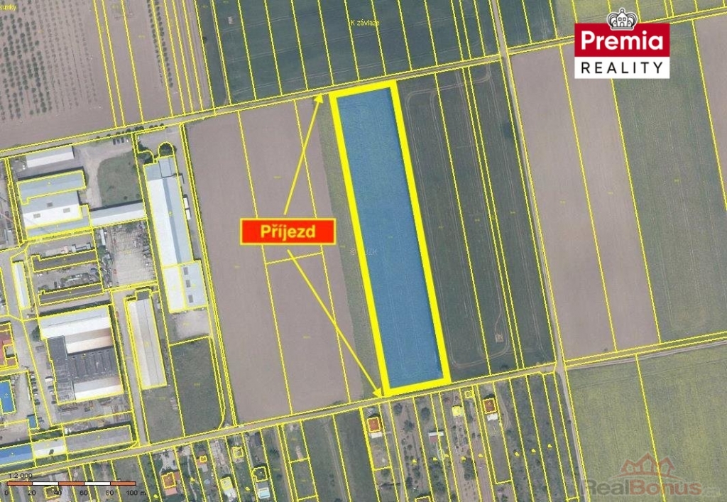 Rozměry pozemku přibližně 45 x 235 m. Je přístupný ze dvou stran po nezpevněné komunikaci.