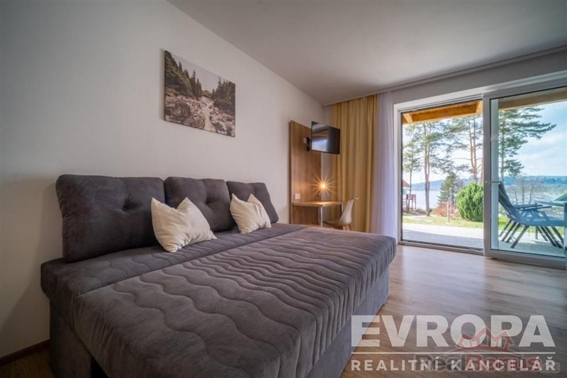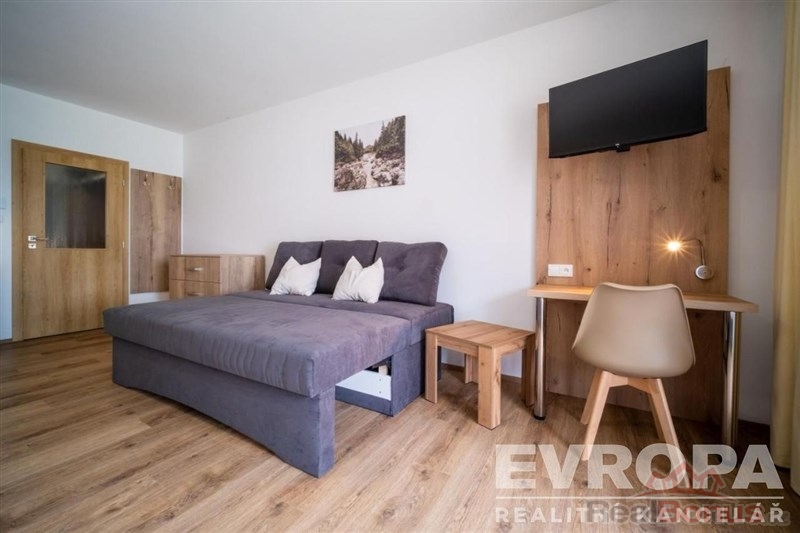 Prodej plně vybaveného bytu apartmánu v Lipně nad Vltavou, dispozice 1+kk, plocha 42m2 + terasa 16,5m2.