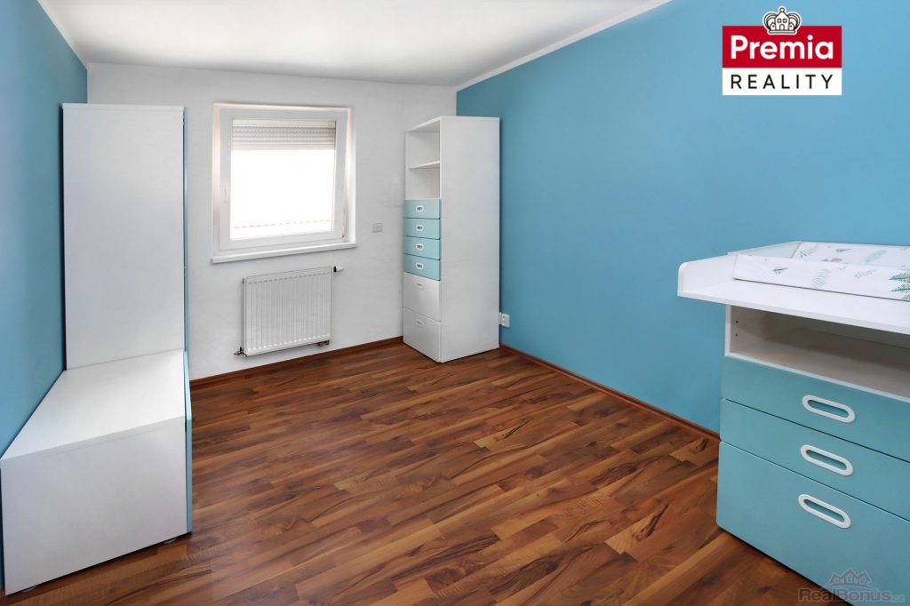 Byt se skládá z prostorného obývacího pokoje propojeného s kuchyňskou částí a jídelnou, dětského pokoje, ložnice a další místnosti, která v současné době slouží jako šatní místnost.