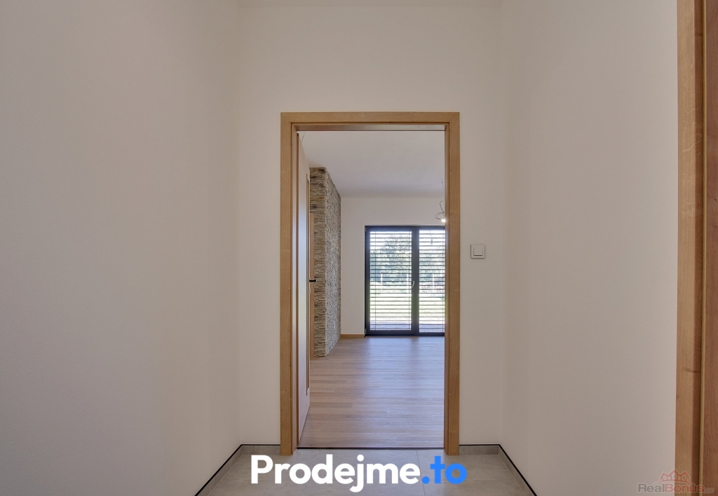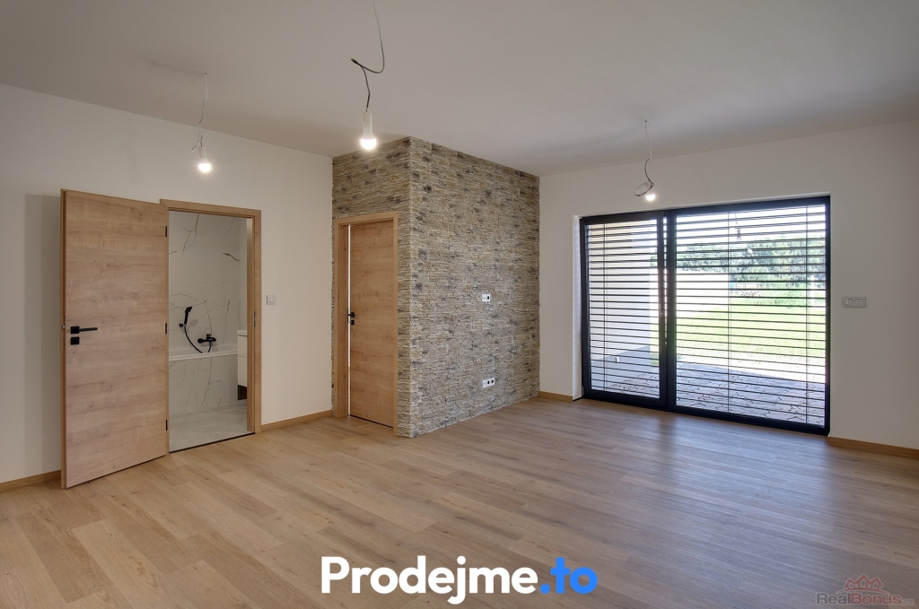 Středobodem rodinného života je prostorný obývací pokoj s kuchyňským koutem a francouzskými okny na terasu. Obývací pokoj je tak krásně prosvětlený a zároveň propojuje dům s dalšími místnostmi. Najdete zde ložnici orientovanou do zahrady, která poskytuje dokonalé soukromí a klid po náročných dnech, velký dětský pokoj, koupelnu s vanou, sprchovým koutem i toaletou a technickou místnost přiléhající k předsíni. Milovníky venkovního posezení potěší krytá terasa se zámkovou dlažbou. Její celoroční využití umožňuje vyvedená elektřina i voda v nezámrzném systému. Nad domem je půda, která poskytuje dostatek místa pro uložení všech vašich nezbytností.