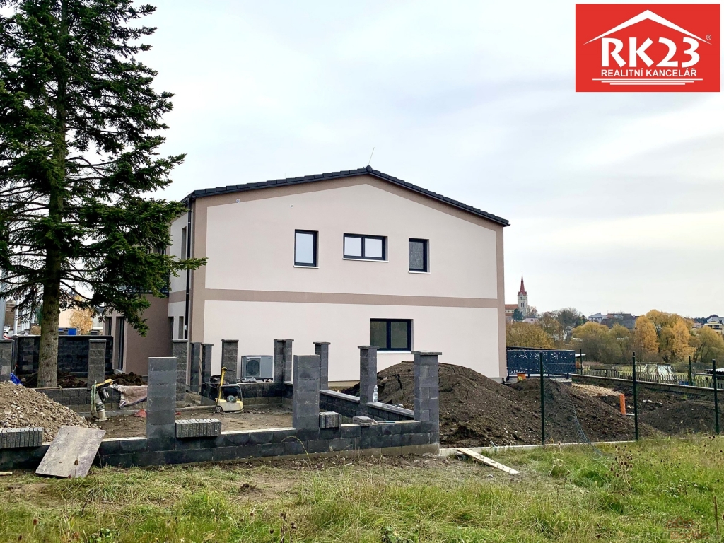 Nabízíme k prodeji moderní novostavbu rodinného domu ve vyhledávané lokalitě Klimentov v obci Velká Hleďsebe. Jedná se o dvojdomek, kde k prodeji je dům situovaný vpravo, je dvoupodlažní s užitnou plochu domu 200 m2. Na prvním podlaží se nachází obývací pokoj s kuchyňským koutem, který je připraven na instalaci nové kuchyně dle vlastních představ, dále terasa s krásným výhledem na obec a kostel, ložnice s koupelnou a toaletou, technická místnost a samostatná toaleta. Na druhém patře se nachází ložnice se vstupem na terasu, s vlastní koupelnou a šatnou, dále dva pokoje s balkonem a další koupelna. Dům je postaven v elegantním designu s použitím nejnovějších technologií a kvalitních materiálu. Je zde podlahové vytápění, které je řešeno tepelným čerpadlem a stejně tak i ohřev vody. Dům je napojen na veřejnou kanalizaci a vodovodní řad, je velmi úsporný, s nízkými náklady na provoz. K domu bude náležet oplocená zahrada o velikosti 300 m2. Obec Velká Hleďsebe je v posledních letech vyhledávanou lokalitou pro výstavbu rodinných domů. Je v dobré dopravní dostupnosti do Mariánských Lázní, přibližně 5 minut autem. V obci se nachází veškerá občanská vybavenost. Tato moderní novostavba nabízí dostatek prostoru pro pohodlný život celé rodiny. Stojí na slunném místě s možností parkování před domem. Nabízí bydlení bez starostí, rovnou k nastěhování.