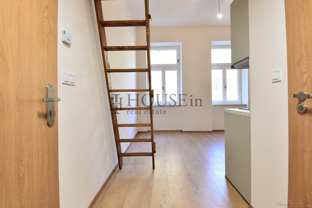 K dlouhodobému pronájmu nabízíme útulný a zcela nový byt 1+kk (garsoniéra) o ploše 21 m2 + 7 m2 patro na spaní, který se nachází v prvním patře (2. NP) nově zrekonstruovaného cihlového domu s recepcí v ulici Sokolská, Praha 2 ? Nové Město. Ideální pro jednotlivce nebo pár, kteří hledají klidné a kvalitní zázemí v centru města.