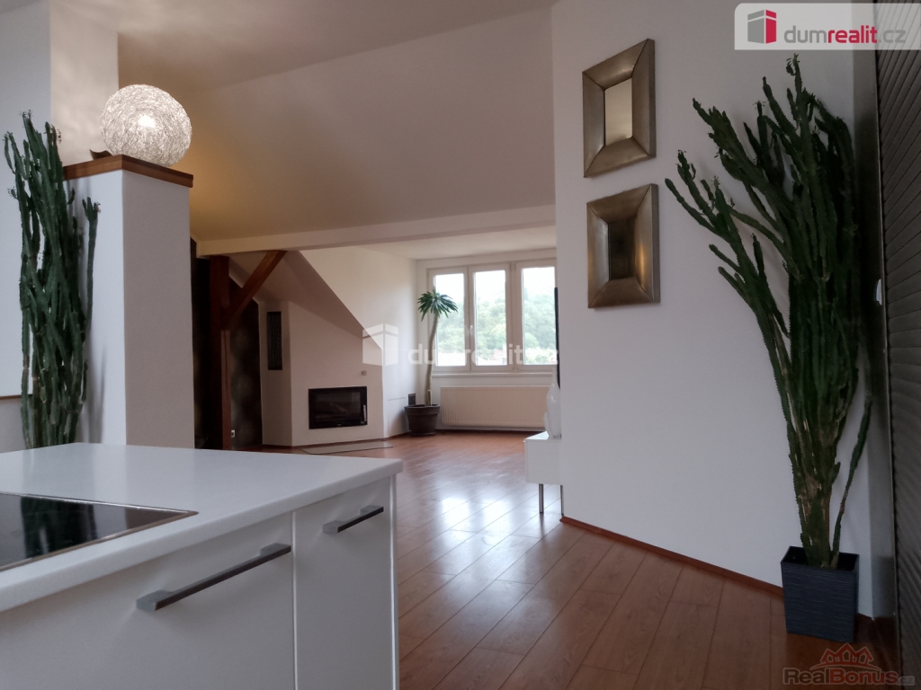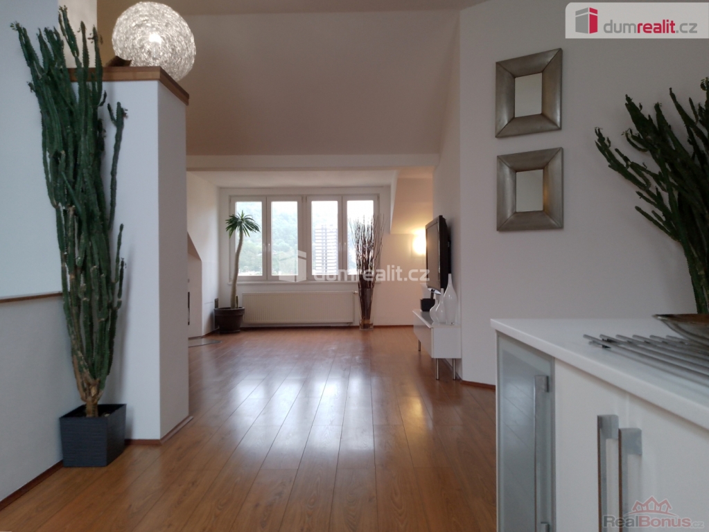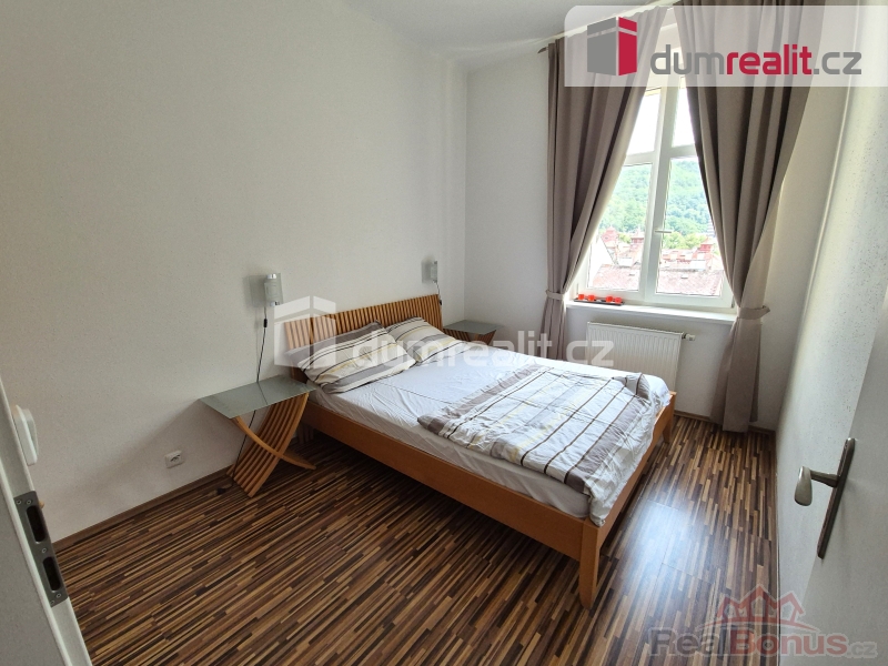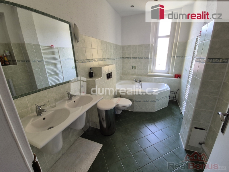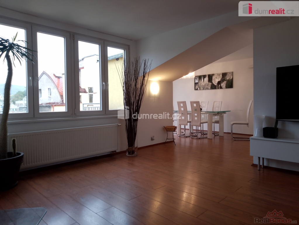 + poplatky 1.121,-Kč/2 osoby, Dumrealit.cz Vám zprostředkuje exkluzivně pronájem zařízeného, pěkného mezonetového bytu 4+kk, 159,9 m (vč. sklepní kóje) s výhledem na Karlovy Vary, v ulici Jugoslávská, v centru Karlových Varů. Bytová jednotka v osobním vlastnictví zrekonstruována v roce 2009, umístěna ve 4.patře cihlového domu bez výtahu, nabízí komfortní a prostorné bydlení. Byt je vybaven moderní kuchyňskou linkou, dále nábytkem (nová dvoulůžková postel), TV, pračkou, sušičkou. Celé vybavení v bytě zůstává, majitel jej nebude vyklízet. Okna bytu plastová, vytápění a ohřev vody zajišťuje plynový kotel. Dolní patro má z předsíně vstup do tří pokojů, koupelny s vanou a WC. Dále je zde úklidový a prací kout. V horním patře je otevřený prostor (1+kk) kuchyň s obývákem, jídelním koutem se vstupem na balkón a menší koupelna formou sprchového koutu, WC. V domě je půda, přístupná pro všechny. V bytě je Wi-Fi. Majitel požaduje slušné, čistotné nájemníky, nekuřáky, žádná zvířata. Vratnou kauci ve výši 46.000,-Kč. Nájemné splatné do konce měsíce. Měsíční nájemné: 23.000,-Kč + zálohy za služby (společně osvětlení v domě, odvoz odpadu, studená voda) za 2 osoby: 1.121,-Kč. Elektřinu a plyn si nájemce sjedná smluvně s dodavateli. Provize RK 11.500,-Kč vč. DPH. Pronájem ihned. Ev. číslo: 652000. Energetický štítek: E (157 kWh/m2/rok).