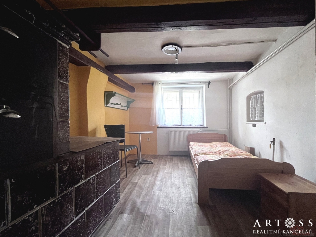 Hlavní budova je ve stabilním technickém stavu a nabízí vhodné podmínky pro konverzi na byty či rekreační ubytování.