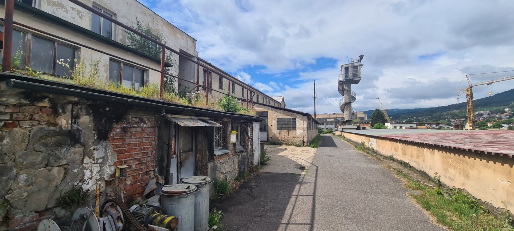 Prodej rozsáhlého areálu se zázemím pro výrobu (stavbu) a opravu lodí, podlahová plocha 12.815 m2, celková výměra pozemků areálu 102.614 m2, Křešice - Děčín