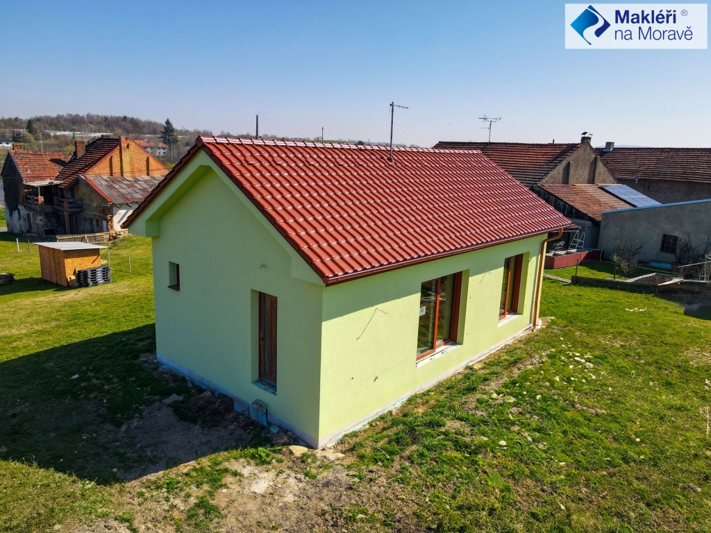 SNÍŽENÍ CENY! Hledáte ke koupi menší dům, který si dokončíte dle vlastních představ? Dům, který má pěkný pozemek, je v klidné lokalitě a zároveň s dobrou dopravní dostupností? Mám pro vás novostavbu domu o dispozici 2+kk s užitnou plochou 54 m2 (zastavěná plocha 74 m2), umístěnou na pozemku o celkové výměře 1058 m2, který se nachází v obci Polom u Hranic (na Moravě), v okrese Přerov.
