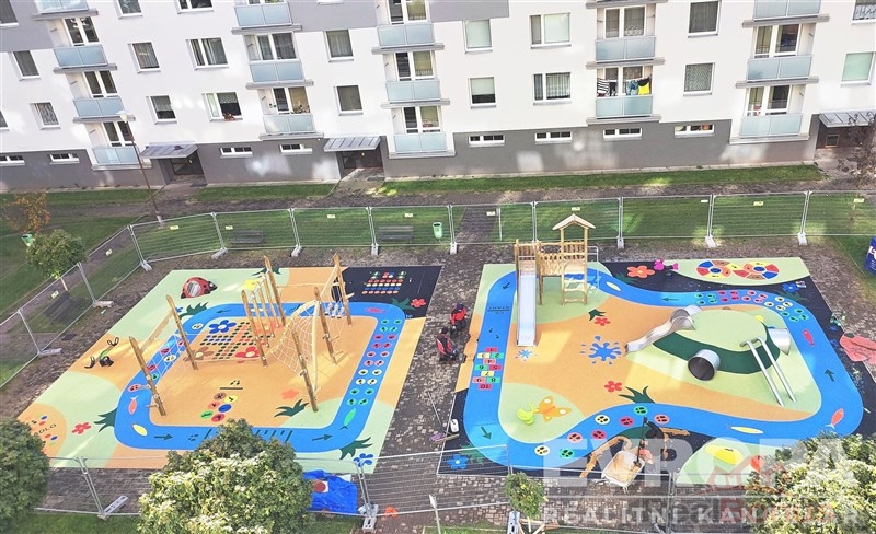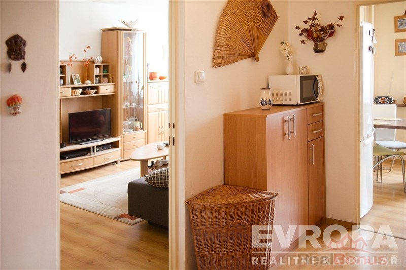 Byt se skládá ze vstupní chodby, která slouží jako distribuční koridor do všech místností. Obývací pokoj je prostorný s dostatkem přirozeného světla, kuchyně je vybavená základními spotřebiči a nabízí dostatek místa pro vaření a stravování rodiny. Byt disponuje dvěma ložnicemi, které jsou ideální pro rodinné bydlení. Koupelna a toaleta jsou oddělené, což usnadňuje ranní přípravu v pracovní dny. Součástí je i balkon s plochou 3 m, odkud se nabízí výhled na běžecký areál Hraběnka.