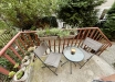 Obývací pokoj má přímý vstup na terasu s posezením. Z terasy vedou schody na dvorek a zahradu domu. Oboje je odděleno od ulice domem. Kuchyňská část obývacího pokoje je vybavena kuchyňskou linkou s vestavěnou horkovzdušnou troubou, plynovou varnou deskou a volně stojící ledničkou s mrazákem. Je zde také jídelní stůl s židlemi. Obývací část je vybavena sedací soupravou a u protější zdi je televize. Ložnice má také výhled do zeleně dvora a vejde se do ní dvojpostel a stůl či šatník.