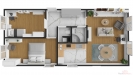 Byt je o rozměrech 74,13 m2 + sklep 2 m2 tj. užitná plocha bytu 76,13 m2.