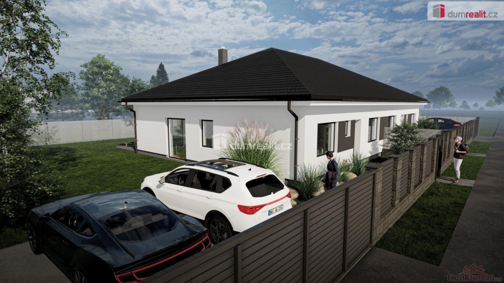 , prodej rodinného domu o dvou bytových jednotkách v obci Malý Újezd-Vavřineč. Obě jednotky jsou dispozičně řešené, jako 4+kk a každý disponuje užitnou plochou 127 m a pozemkem o rozloze cca 465 m. Ve fotogalerii najdete vizualizaci domu a poté nafocený vzorový dům z jiného projektu. Předpokládané nastěhování je ke konci roku 2025. Dům je dispozičně řešen následovně: přes zádveří se dostaneme na samostatnou toaletu a dále do prostorné chodby, odkud jsou přístupné všechny místnosti. Tedy dva pokoje, ložnice, šatna, koupelna s toaletou a důmyslně řešený obývací pokoj s kuchyňským koutem (33 m s krbem), kde je navíc k dispozici spíž. Z obývacího pokoje a ložnice je přímý vstup na krytou terasu. Dům se vyznačuje dostatkem soukromí a vysokými standardy. Dům bude připojen na vodovodní řád a spádovou kanalizaci. Plyn zde není. Pokud si přejete bydlet v klidu na venkově, přesto s dobrou dostupností do Prahy, pak je tento dům právě pro Vás. Obec spadá do správního obvodu obce s rozšířenou působností Mělník.