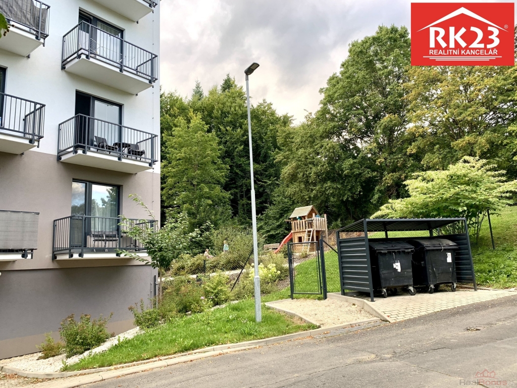 Nabízíme k prodeji moderní byt 2+kk v osobním vlastnictví na ulici Chebská v Mariánských Lázních. Bytová jednotka se nachází na 2.NP v novostavbě bytového domu s výtahem. Dům byl postaven v roce 2021. Dle průkazu energetické náročnosti je budova ve třídě C, tedy úsporná. Užitná plocha bytové jednotky je 53 m2. Součástí bytu je balkon o velikosti 6 m2 s orientací na jihozápad s krásným výhledem na les. K bytu patří sklep o velikosti 2 m2, který se nachází na stejném patře. Byt se skládá z prostorné chodby, ložnice, obývacího pokoje s kuchyňským koutem a koupelnou se sprchou a toaletou. V kuchyni se nachází moderní, plně vybavená kuchyňská linka a lednice s mrazákem. V ložnici je manželská postel z masivního buku a velká šatní skříň. Na chodbě jsou vestavěné skříně, které zajišťují dostatek úložného prostoru. Velká okna zajišťují dostatek denního světla. Vytápění a ohřev vody je centrální, které zajišťuje plynová kotelna v domě. Celý areál je zabezpečen kamerovým systémem. Bytový dům Green Garden se nachází v klidné a vyhledávané lokalitě Mariánských Lázní na hranici lesa a parku. V pěší dostupnosti jsou nákupní centra, škola, školka, bazén, zimní stadion, restaurace, banka, čerpací stanice a trolejbusová zastávka. Dětské hřiště je vedle domu. Výhodou je možnost parkování poblíž objektu.