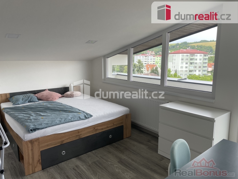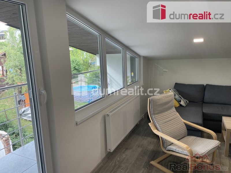 Podkrovní prostor s výměrou 70 m domu, který je po velmi zdařilé rekonstrukci, poskytuje k dlouhodobému pronájmu tři pokoje, k nimi tři balkony, koupelnu s podlahovým vytápěním a vybavenou kuchyň .