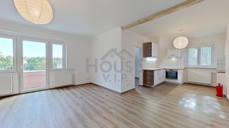 Obývací pokoj s kuchyňským koutem a vstupem na balkon