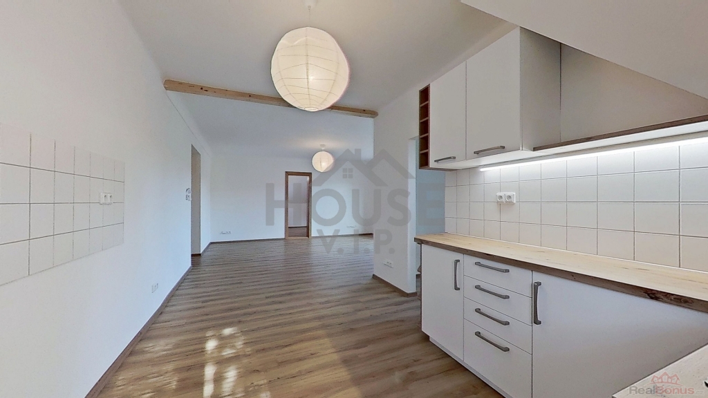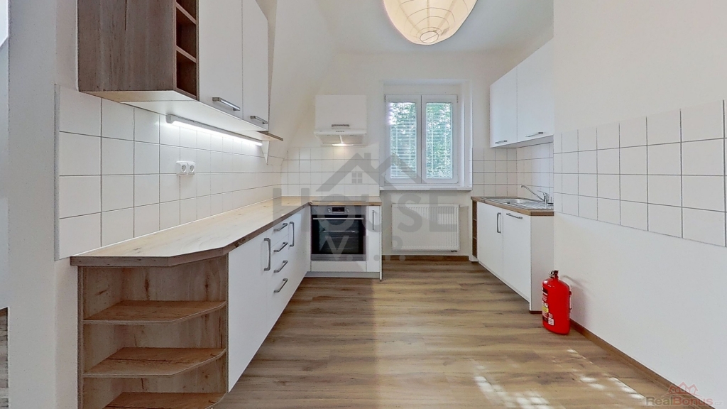Byt je nabízen bez nábytku (viz aktuální fotodokumentace), interiér si tak můžete zařídit podle vlastních potřeb. V kuchyňském koutě s oknem a velikou komorou je nová kuchyňská linka kompletně vybavená spotřebiči ( elektrická trouba, varná deska, digestoř, myčka). V atypické koupelně, která má také okno, je umístěná vana a je zde připravený prostor na pračku. WC je samostatné a také s oknem.