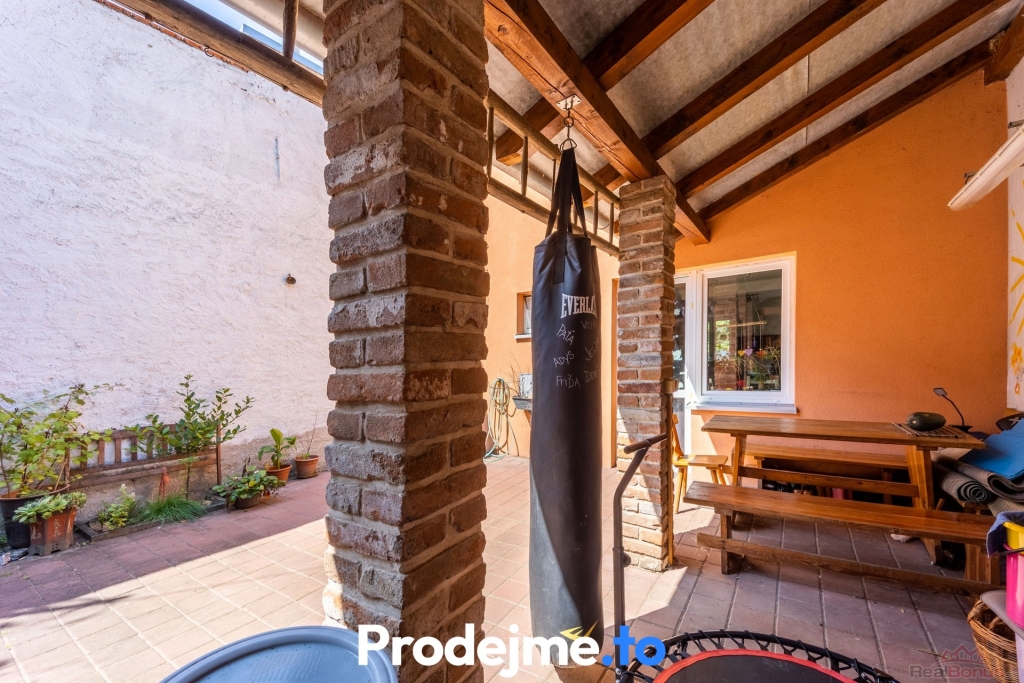 Na dvorku o velikosti 40 m2 vás čeká posezení pod přístřeškem, kam se dostanete přímo z kuchyně. Dvorek je uzavřený z obou stran, takže si tu užijete soukromí a pohodu ? ať už při ranní kávě nebo večerním grilování s přáteli.