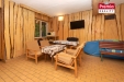 Skládá se ze 4 ložnic, vybavené kuchyně (elektrický sporák, mikrovlnná trouba, lednice) a velké prosklené verandy v 1. patře. V přízemí je velká společenská místnost s krbem, barem, pípou a televizí. Dále sklad, sklep, koupelna s WC a krytá terasa s posezením. K dispozici je udírna, zahradní nábytek, loďka.