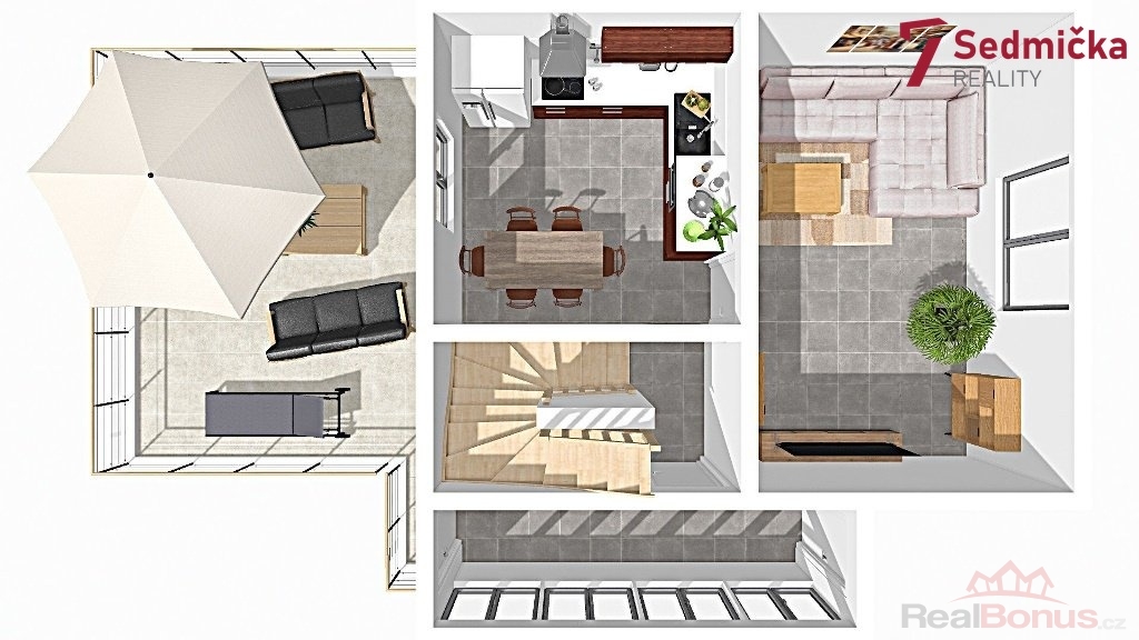 V obytném podlaží domu je zádveří, chodba, kuchyně, pokoj. V podkroví je umístěný druhý pokoj a půda. Koupelna, WC, komora - špajz jsou umístěny v suterénu. Na spodní část domu navazuje garáž, jejíž střecha slouží zároveň jako terasa. Dům je napojen na vodovod, plynovod, elektřinu, odpady do septiku. Na dům navazuje dvorek a zahrádka. Dům lze užívat jak k trvalému bydlení, tak i jako chalupu. Financování domu je možné i úvěrem ze stavebního spoření nebo hypotékou - zajistíme. Nezávazná konzultace s naším finančním specialistou - zdarma. Můžeme zajistit i financování pro klienty, kteří nedostanou úvěr v bance.