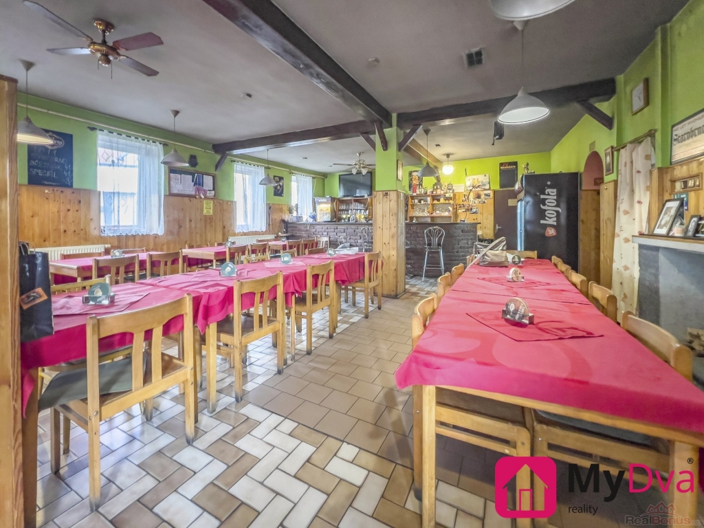 Samotná stavba byla postavena v první polovině 20. století, je cihelno-smíšené konstrukce a v průběhu let prošla průběžnou údržbou a rekonstrukcí. Celková užitná plocha činí téměř 245 m2. Interiér tvoří členité prostory, které zahrnují hlavní sál, menší místnosti, kuchyni, sklady, sociální zázemí a také obytnou část se třemi pokoji. Praktické zázemí doplňuje kotelna, komora, spíž a chodby. V objektu je k dispozici koupelna se sprchovým koutem a několik toalet. Velkým bonusem je také prostorná půda, která nabízí potenciál pro vybudování dalšího bytového prostoru.