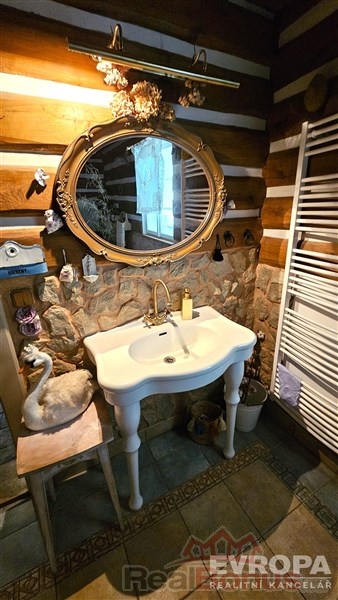 Exteriér domu je vybaven terasou a zahrádkou, která je ideální pro odpočinek, zábavu nebo prostě pro spojení s přírodou. Struktura a poloha chalupy nabízí dostatek venkovního prostoru pro různé aktivity. Sklep zde také nalezneme, který poskytuje praktický úložný prostor.