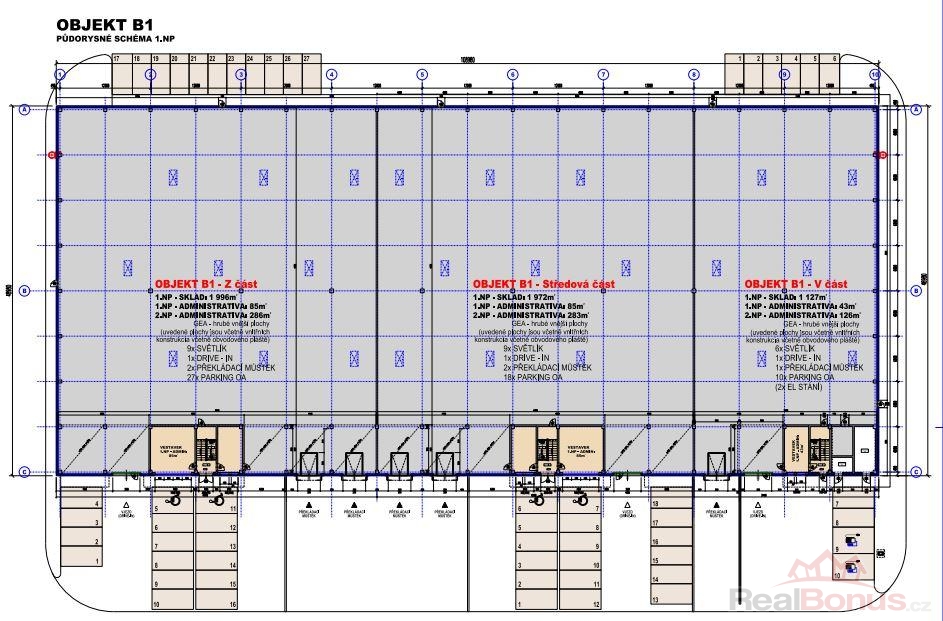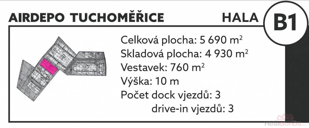 Hala B1 - celkem 4930 m2 skladů - dělitelné na 3x 1650 m2 + zázemí.