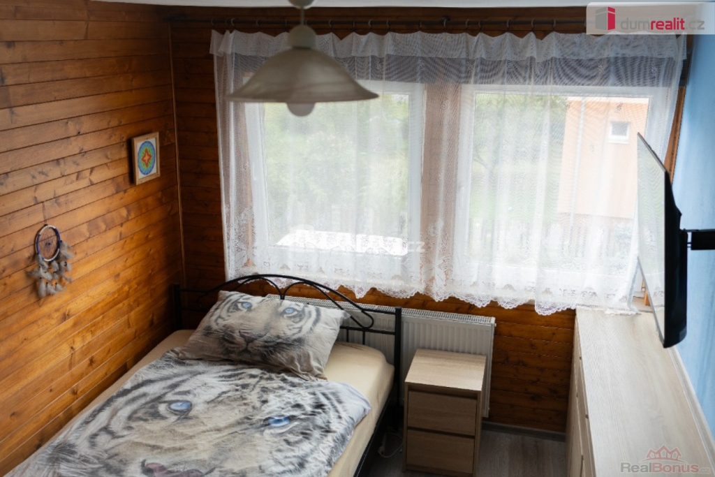 Dispozice domu 5+1 nabízí prostorné obytné prostory ideální pro rodinné bydlení. K domu patří garáž a technická místnost a prostorná půda, které vám poskytnou dostatek úložného prostoru. Dvoupodlažní dům se sedlovou střechou je v osobním vlastnictví a je rekonstruován. Vytápění domu je zajištěno krbovými kamny a elektrokotlem. Fasáda je zateplená a obložená dřevem V 1.NP jsou dva pokoje. Odpady jsou řešeny ČOV vlastněnou z 1/4. Koupelnu a větší technickou místnost je možno přizpůsobit podle potřeby. Je zde rovněž vstup do garáže s možností využití jako dílna, případně po úpravě jako další velký pokoj. Vstup na zahradu je přes zastřešenou terasu a vjezd na ni je z opačné strany zahrady. Ve 2.NP jsou 3 pokoje, kuchyň a koupelna. Z chodby je vstup na prostornou pochůzí půdu po sklopných schodech. Na terase si můžete vychutnat krásné klidné chvíle s výhledem do zahrady s rodinou nebo přáteli.