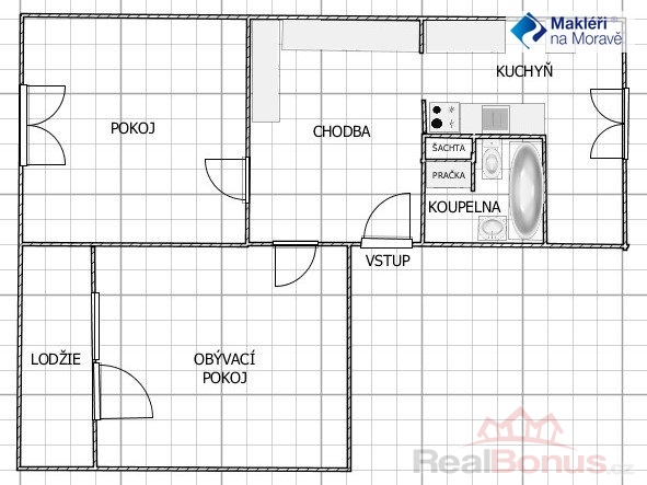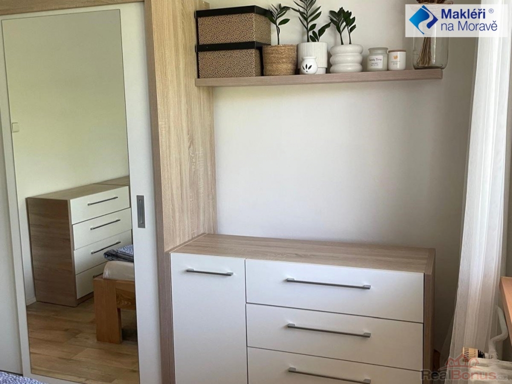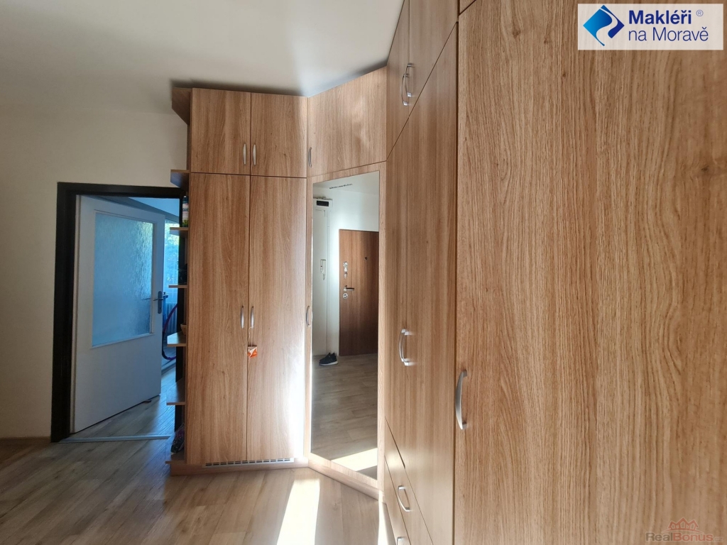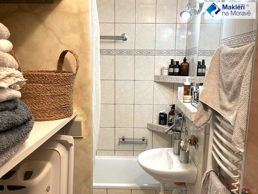 Na chodbě se nachází velká skříň, která dále zvyšuje úložné možnosti bytu. K dispozici bude také pračka nacházející se v koupelně. Celý byt je prosvětlený a vzdušný, a to přispívá k příjemné atmosféře domova.