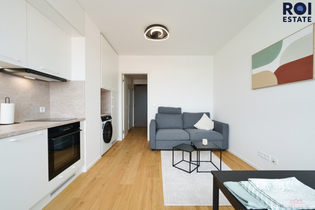 Nabízíme k podnájmu kompletně vybavený , zcela nový, světlý atelier1+kk v prémiovém rezidenčním komplexu Pekárenský dvůr ? jen pár minut od centra.