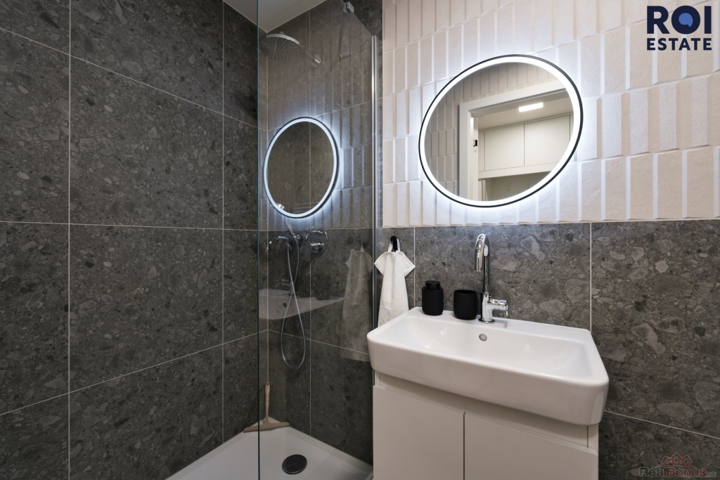 Byt je umístěný ve Františkově domě , samotná plocha bytu je 23 m2, nachází se v 7. nadzemním podlaží novostavby . Byt je kompletně vybavený, v bytě najdete plně vybavenou kuchyňskou linku s myčkou , vestavěné skříně, a moderní koupelnu se sprchovým koutem, kamenným obkladem a LED zrcadlem. Pohovka v bytě je rozkádací.