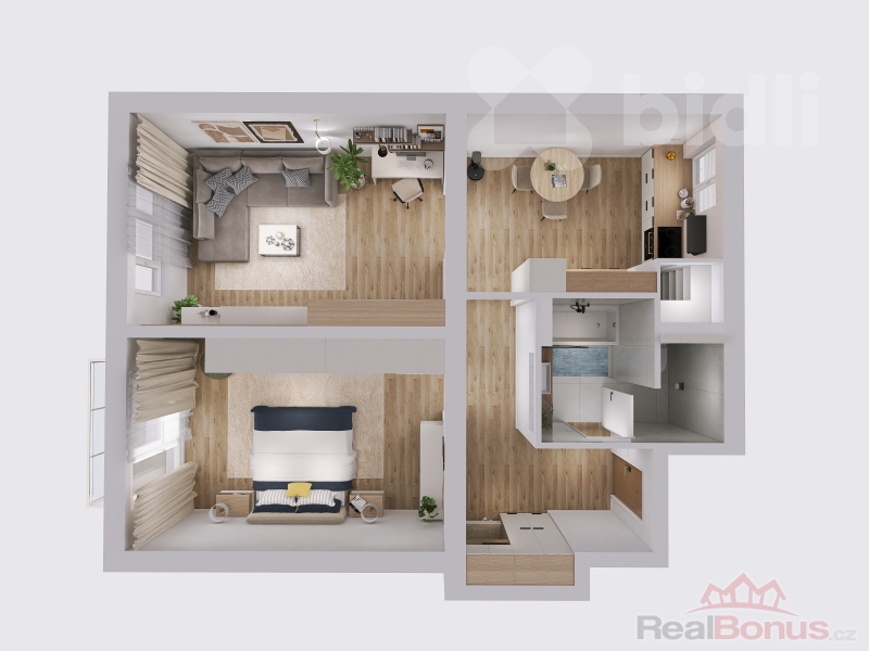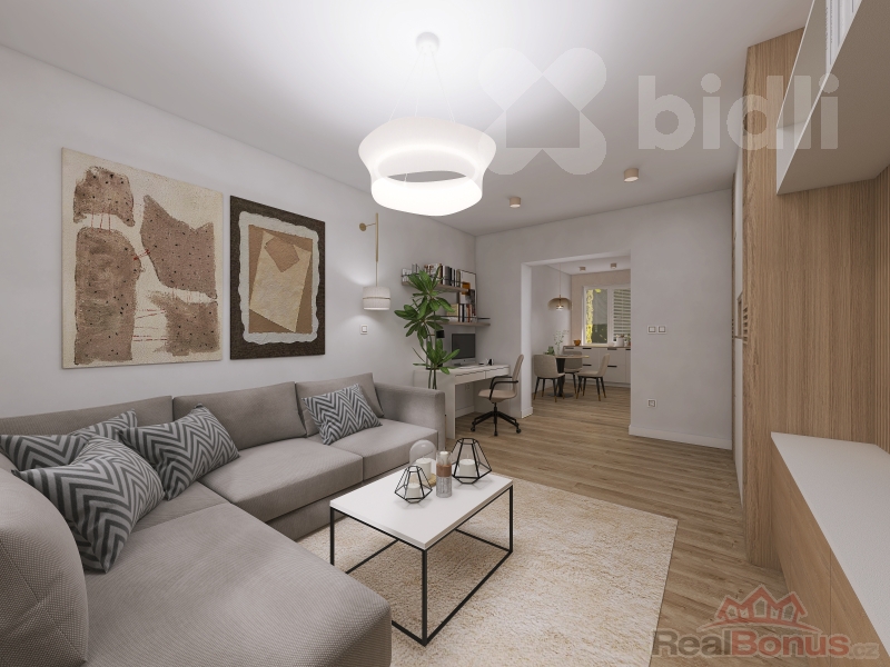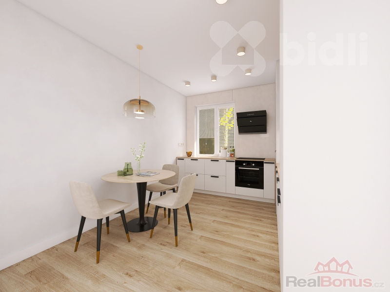 Byt je v započaté rekonstrukci, připravený k dodělaní dle vlastní představ (přikládáme vizualizace pro inspiraci), dispozičně velmi pohodlný - dva neprůchozí pokoje, prostorná kuchyň, koupelna a samostatné WC.