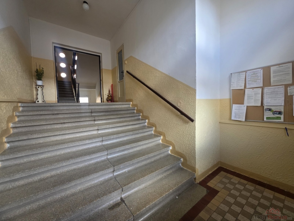 Byt je umístěn ve 4. patře udržovaného panelového domu. Dům nedisponuje výtahem.