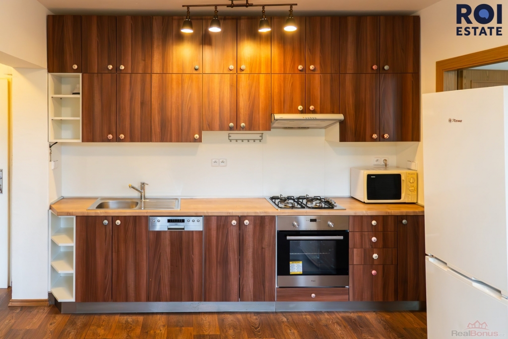 Byt bude pro nového podnájemníka čerstvě vymalovaný na bílo, vybavený kuchyňskou linkou a spotřebiči. Ostatní zařízení si můžete zařídit podle svých představ. K bytu náleží také sklepní kóje.