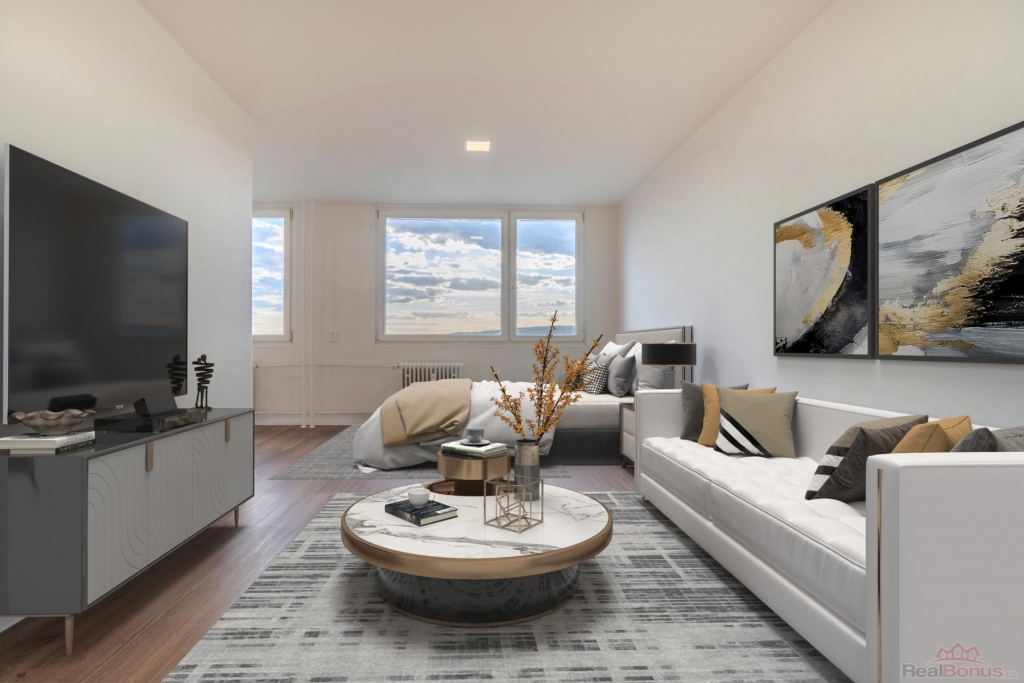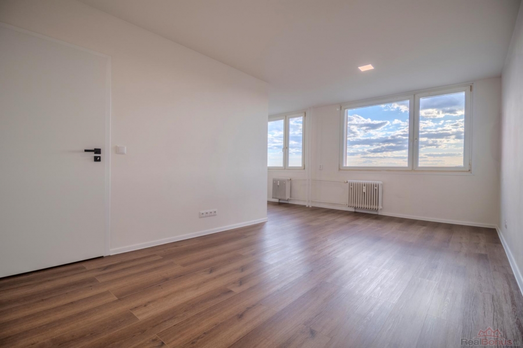 Pronájem prostorného prosvětleného bytu o dispozici 1+kk s exkluzivním výhledem na Most. Byt v osobním vlastnictví se nachází v 11. podlaží zatepleného panelového domu s výtahem. Jeho celková užitná plocha činí 33,76 m2 a v květnu roku 2025 byla dokončena kompletní rekonstrukce. Při rekonstrukci byly provedeny kompletně nové rozvody vody a elektřiny, instalovány podhledy, vyměněny interiérové i exteriérové dveře, položeny nové vinylové podlahy, zrekonstruována koupelna a osazena nová kuchyňská linka. Tento byt nabízí moderní a komfortní bydlení s krásným výhledem v klidné lokalitě.
