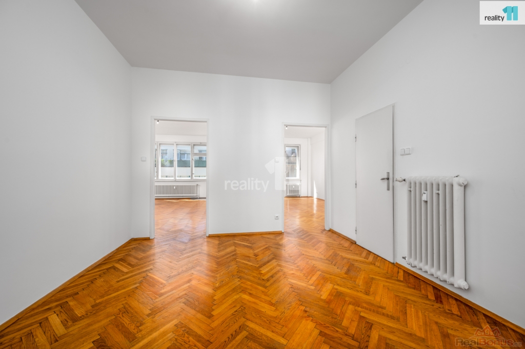 Dispozice bytu je 3+1 se samostatnými pokoji, prostornou koupelnou s vanou i sprchovým koutem a odděleným WC. Celková plocha činí 122 m. Kuchyně vybavená kvalitními spotřebiči navazuje na centrální halu, kterou obyvatelé obvykle využívají jako jídelnu. Podlahy v pokojích tvoří klasické parkety ve velmi dobrém stavu, v kuchyni, koupelně a chodbě je praktická vinylová krytina.