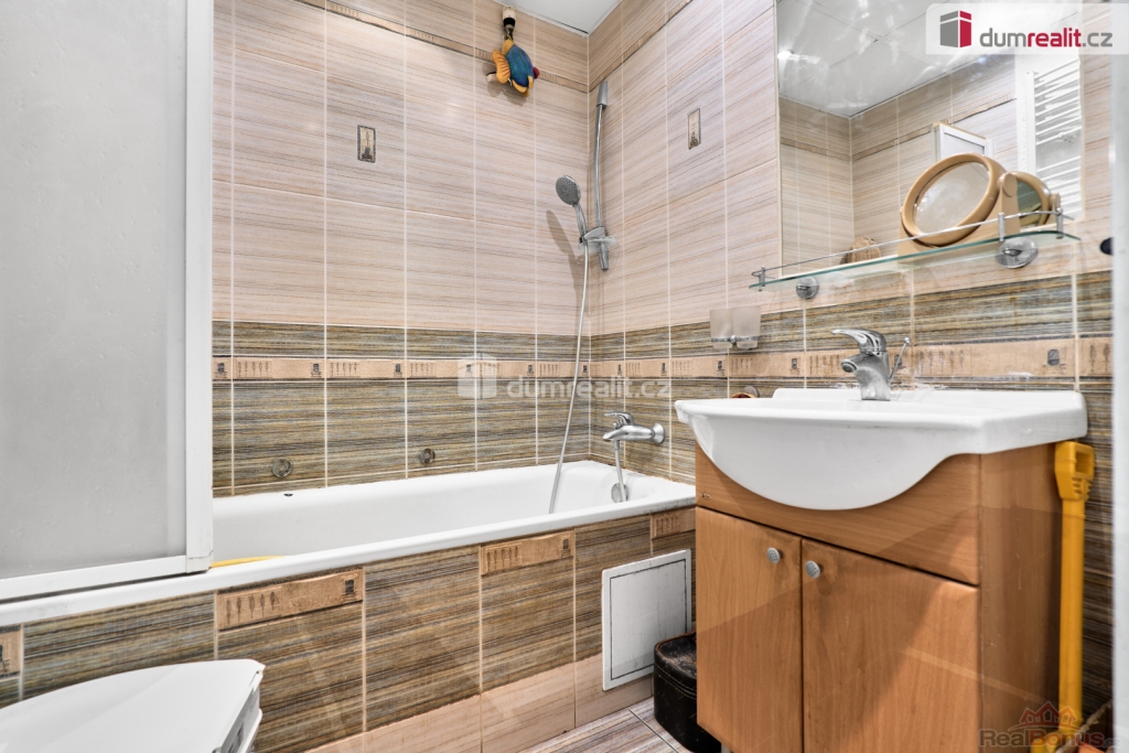 vč. právního servisu a provize RK, Dumrealit.cz Vám zprostředkuje prodej investičního bytu 3+1 v Ostrově u Karlových Varů, není možné koupit pro vlastní bydlení. Bytová jednotka je umístěna v 1. patře zatepleného panelového domu a před časem prošla částečnou rekonstrukcí. Byla vybudována nová koupelna s vanou se skleněnou sprchovou zástěnou, samostatné WC, vyměněna část elektroinstalace a plastová okna, nové podlahy v koupelně, kuchyni a chodbě. V kuchyni je na míru vyrobená linka se spotřebiči (el. trouba, plynová varná deska, digestoř, myčka nádobí). V kuchyni a v jednom pokoji je francouzské okno. Prodej je podmíněn setrváním majitelů (nájemníků) v bytě, za platbu fondu oprav, služeb a energií. Tuto nemovitost lze hradit hypotečním úvěrem, který Vám rádi pomůžeme vyřídit v našem hypotečním centru. Ev. číslo: 652495. Energetický štítek: C (143 kWh/m2/rok).