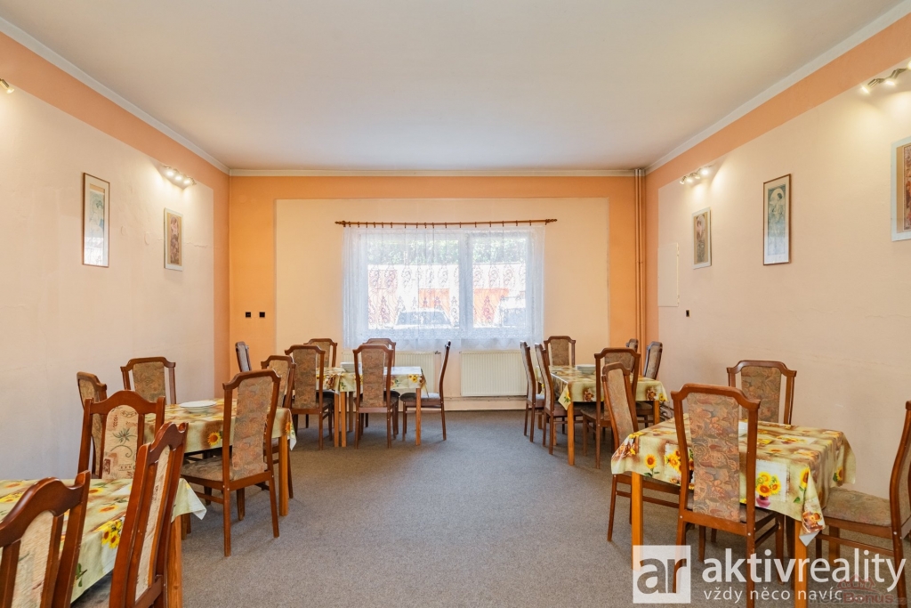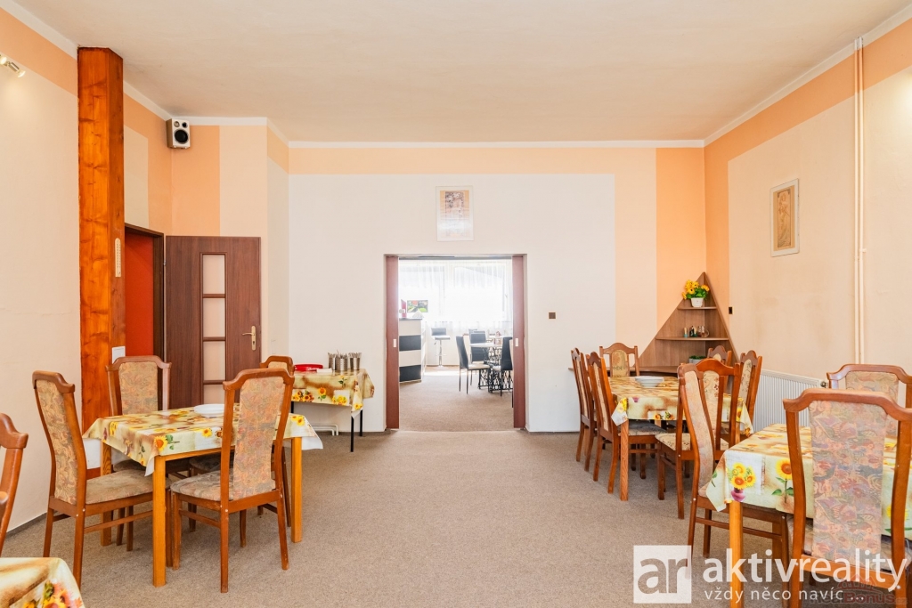Dům je částečně podsklepený a v suterénu cca 70m2 se nachází kotelna, uhelna a sklad. Přízemí je o celkové ploše cca 265m2. V prvním poschodí najdete šest pokojů s vlastní koupelnou a WC a na druhém poschodí jsou další dva samostatné pokoje s koupelnou a WC .