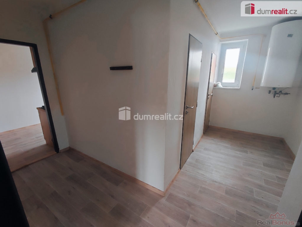 Byt je dispozičně velmi pěkně řešený. Je v prvním nadzemním podlaží domu se samostatným vstupem. Při vstupu do bytu je rozlehlá vstupní chodba, kam lze umístit nábytek jako úložný systém. Obývací pokoj(ložnice) - je oddělený od kuchyně přes tuto chodbu. V koupelně je vana a toaleta je zvlášť.